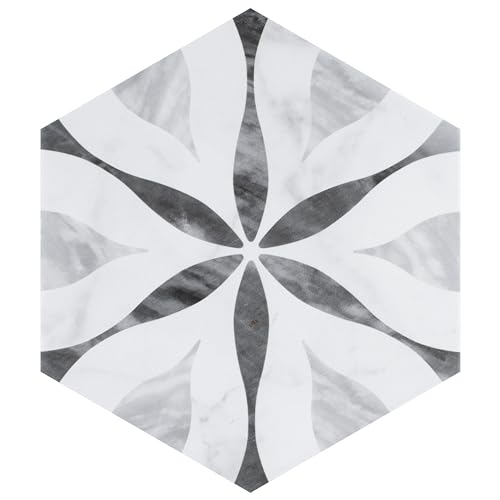 Transform your shower space into a sanctuary of elegance with the Classico Bardiglio Hex Flower Porcelain Tile. Measuring 7"x8", this exquisite tile features a stunning hexagonal design that adds a modern touch while evoking the charm of vintage aesthetics. The intricate flower pattern in a soft gray hue beautifully complements any décor, making it a versatile choice for both contemporary and traditional designs. Crafted for durability and water resistance, this tile not only enhances your bathroom's visual appeal but also ensures long-lasting performance in high-moisture areas.